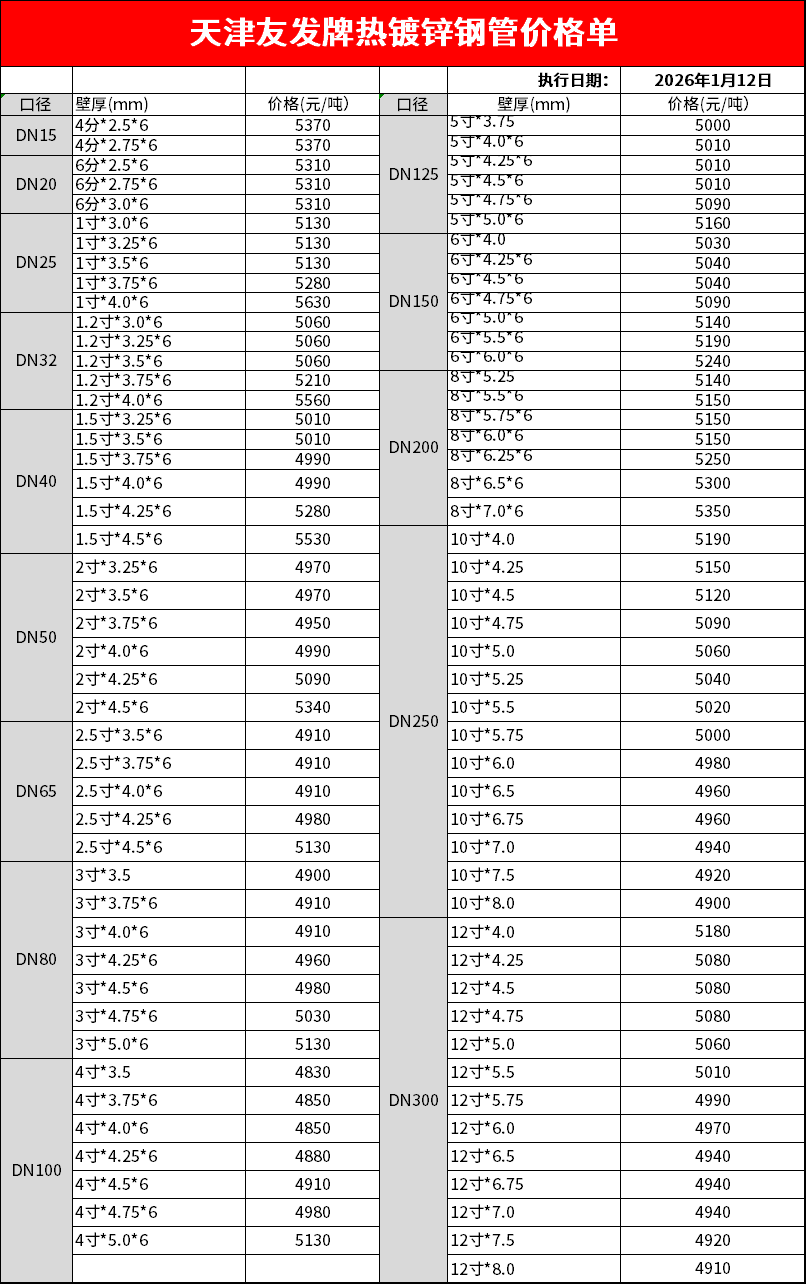 <b style="font-size: 16px;color: rgba(220, 7, 7, 1);">热浸镀锌圆管</b><br/> 规格尺寸:DN15~DN300<br/> 执行标准:GB/T 3091;GB/T 13793<br/> 产品用途:广泛用于水、煤气、空气、油和蒸汽等、低压流体输送及机械结构等<br/> <b style="font-size: 16px;color: rgba(220, 7, 7, 1);">直缝高频焊接圆管</b><br/> 规格尺寸:DN15~DN300<br/> 执行标准:GB/T 3091:GB/T13793<br/> 产品用途:广泛用于机械、建筑等结构用途