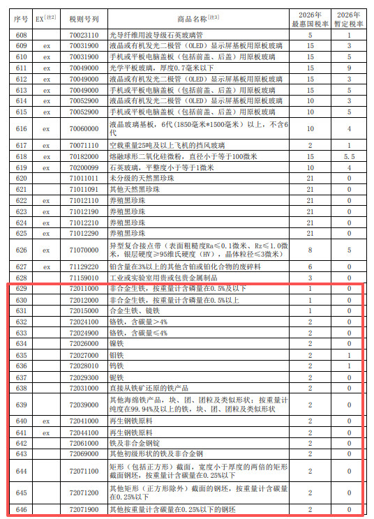 2026年关税调整方案:钢铁类